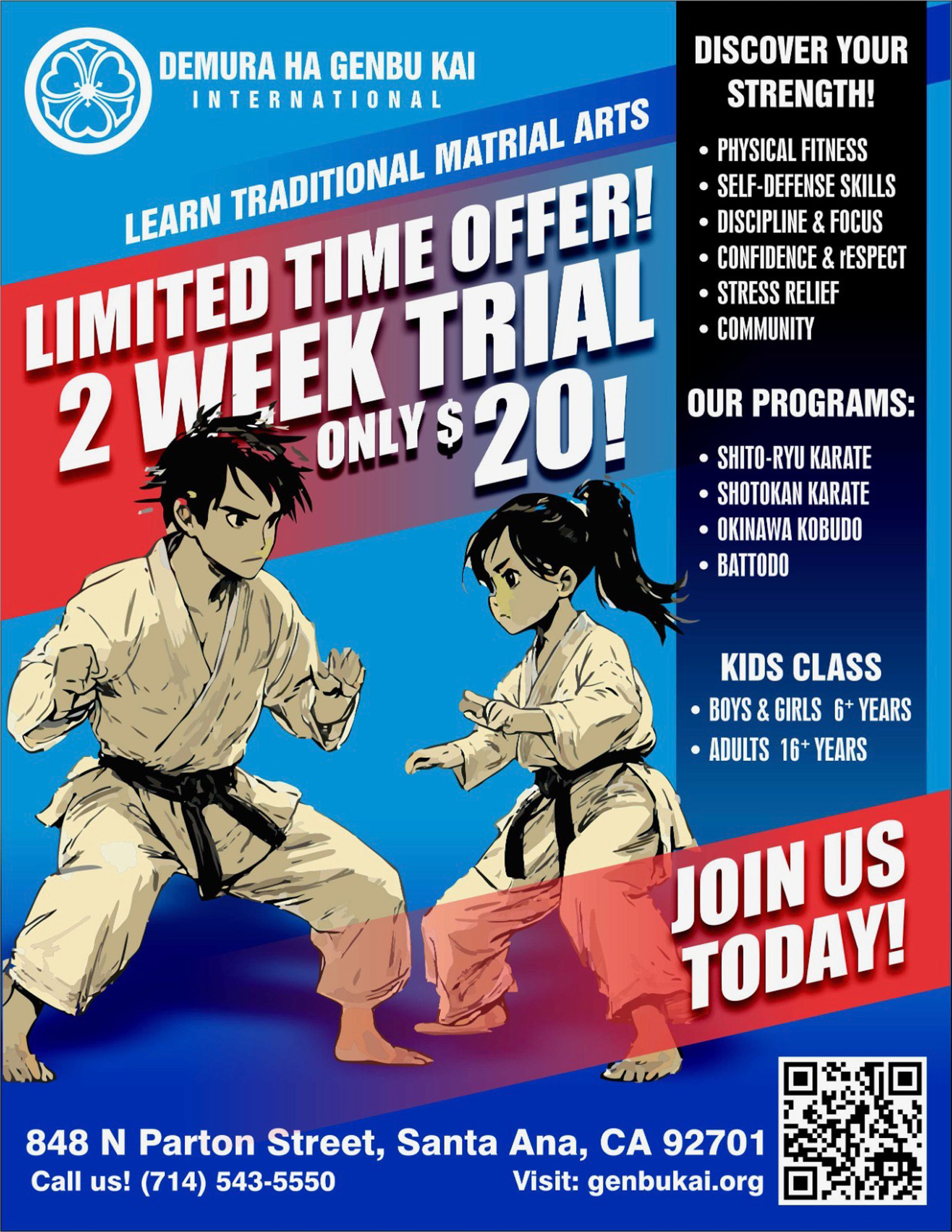 Our main (hombu) dojo is located in Santa Ana, California. Please refer to the Dojo Listings tab for other locations.